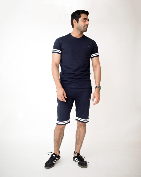 ₨2,200Crew Neck Navy Tshirt and Soft Fabric Navy Shorts Embroidered Logo on Top and Shorts Top and Shorts: 100% Cotton Combed -