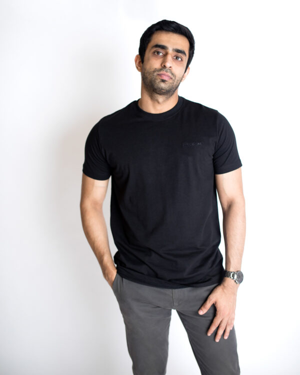 ₨1,000Black Crew Neck Short Sleeve T-Shirt Embroidered Logo on Chest 100% Cotton Combed -