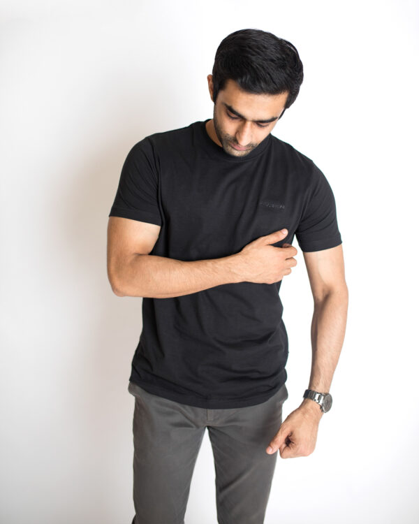 ₨1,000Black Crew Neck Short Sleeve T-Shirt Embroidered Logo on Chest 100% Cotton Combed -