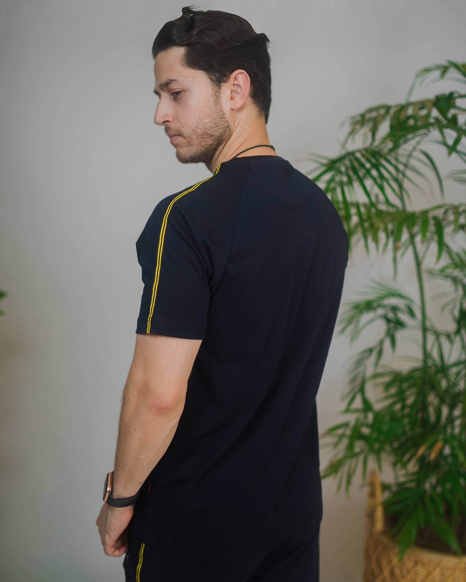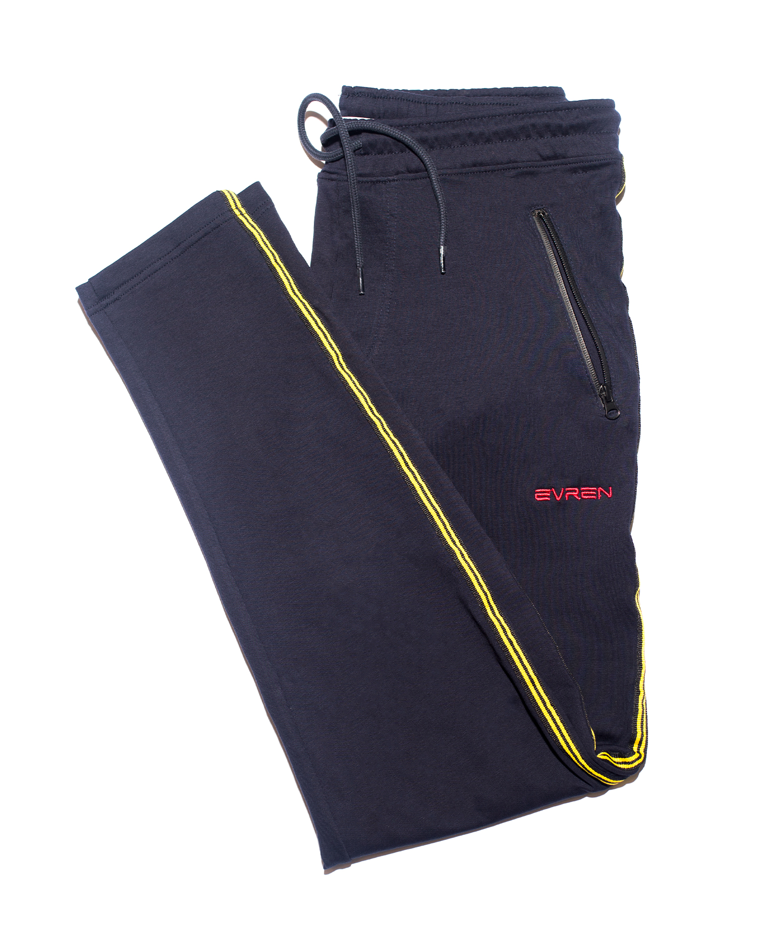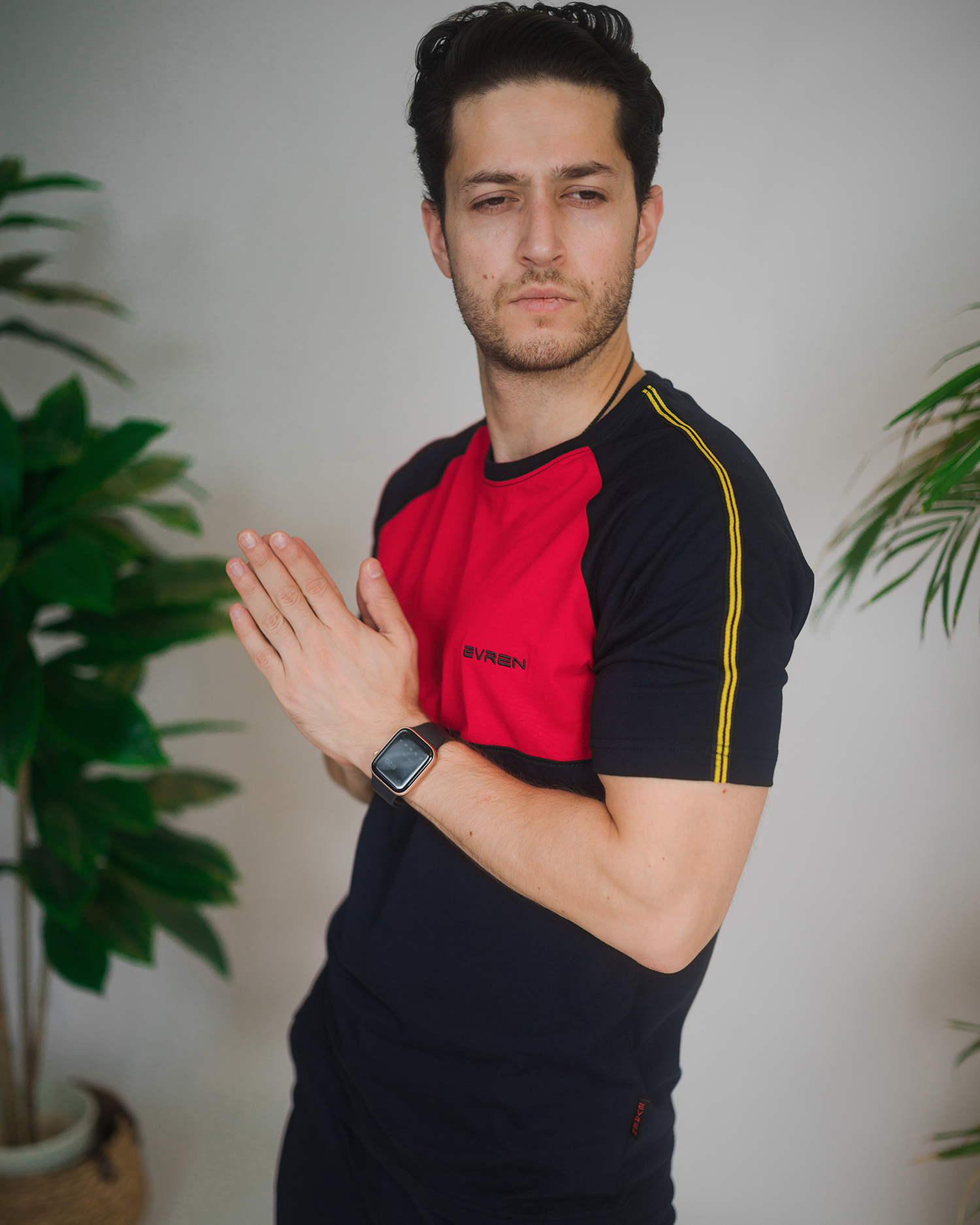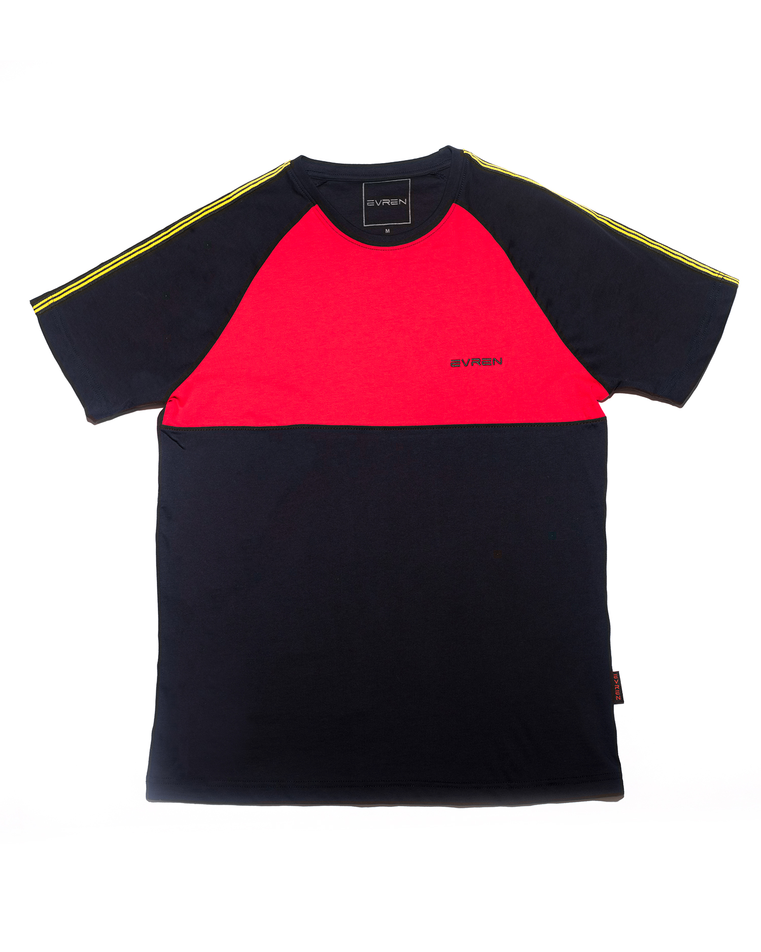 Red & Navy Crew Neck TShirt and Terry Skinny Trouser with Zip Pockets – Black
